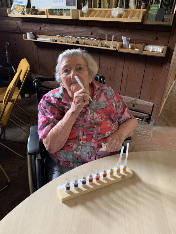 A l'Abbaye de Chaalis, un groupe de résidentes a participé à l'atelier des senteurs, un atelier réminiscence. Le sens olfactif a été très sollicité pendant toute la séance !