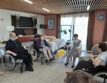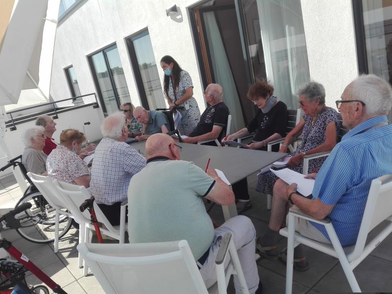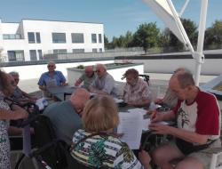 Ce matin, un groupe de 11 volontaires ont fait travailler leurs neurones en compagnie de Lucie la psychologue, lors d'un atelier mémoire proposé sur la terrasse du PASA.