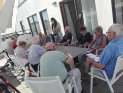Certains résidents ont même profité de la terrasse pour discuter et faire connaissance à l'ombre des parasols après l'atelier.