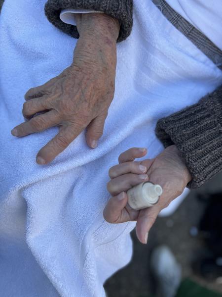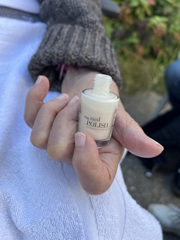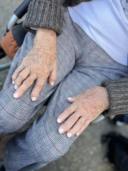 Chaque vendredi après midi se tient un instant suspendu pour chaque résident qui le souhaite avec une manucure sur mesure. Homme ou femme, on lime et on procède à un toucher thérapeutique lors de l'application de la crème pour les mains. Et pour les plus coquettes, on pose du vernis.