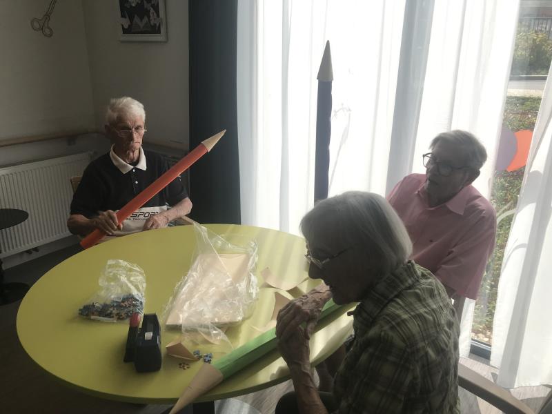 Depuis quelques jours, les résidents des Unités de Vie s'attellent à la décoration de leur lieu de vie sur le thème de la rentrée scolaire.