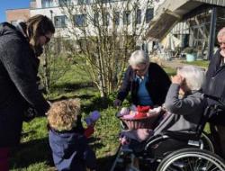 Sous un soleil généreux, petits et grands ont partagé un moment plein de joie et de complicité. Les résidents ont eu à cœur de préparer cette rencontre en confectionnant de jolis chats, offerts aux enfants pour accompagner les traditionnels chocolats.