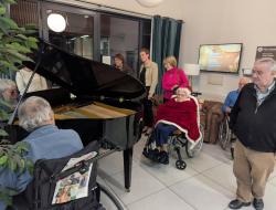 Les Résidents, curieux et souriants, se sont approchés les uns après les autres pour l’écouter. Certains tapaient du pied, d’autres fredonnaient, tous séduits par la vitalité de sa musique.