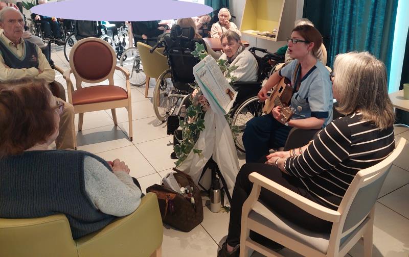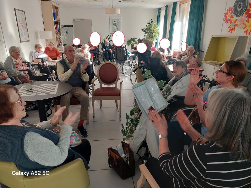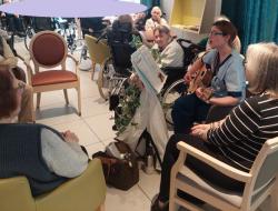 Quelques photos de l’animation guitare-chant qui s’est déroulée en salle d’animation, à l’EHPAD et à l’unité. Un joli moment de partage, de musique et de convivialité, très apprécié par les résidents. 🎶