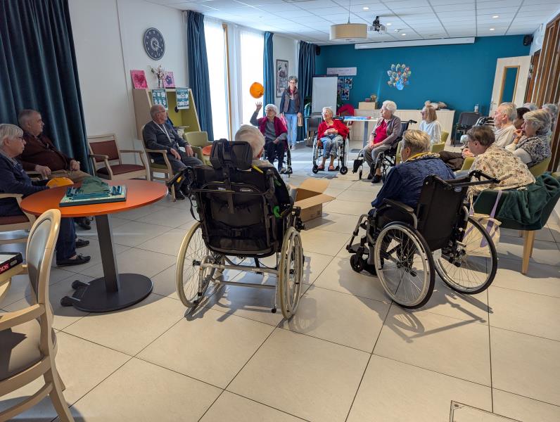 Ce lundi après-midi, la salle d’animation de l’EHPAD s’est transformée en véritable terrain de jeu pour une séance conviviale et pleine d’énergie. Les résidents ont participé à une série de jeux d’adresse alliant concentration, coordination et bonne humeur.