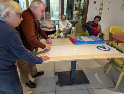 Au programme : palets à glisser vers une cible et lancer de jetons puis de ballons de baudruche dans une caisse placée au centre du cercle des participants. Entre rires, encouragements et petits défis amicaux, chacun a pu tester sa précision tout en partageant un moment chaleureux.