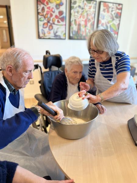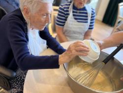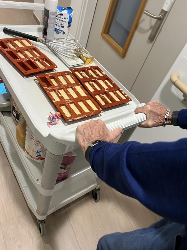 Aux Jardins de l’Aunette à Chamant, l’unité protégée Séraphine a récemment pris des airs de cuisine familiale. Les résidents ont enfilé leur tablier et mis la main à la pâte pour préparer de délicieuses madeleines.