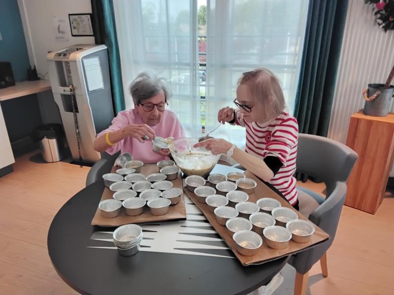 Entre éclats de rire, partage de souvenirs et plaisir de pâtisser des muffins aux pépites de chocolat, chacun a pu mettre la main à la pâte : mélanger, verser, goûter… et surtout profiter d’un moment chaleureux et stimulant.