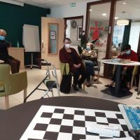 Publiée le 21/01/2022Toutes les fins de matinée, sont proposés une revue de presse et un quiz de culture générale. Les résidents s'y rendent avant le déjeuner. Moment d'échanges et de lien social. Lire la suite