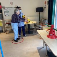 Publiée le 24/06/2021Les résidents et les soignantes font de l'exercice physique à l'Unité de Vie Spécialisée Thomas Couture. Ils apprécient ce moment, parcours de marche, lancer de balles, jeu de précision... Aux prochaines séances ! Lire la suite