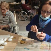 Publiée le 24/03/2022Activité manuelle pour Pâques en salle d'animation avec un petit groupe;Collage au vernis colle de motifs de serviettes en papier sur des œufs en polystyrène. Lire la suite