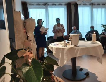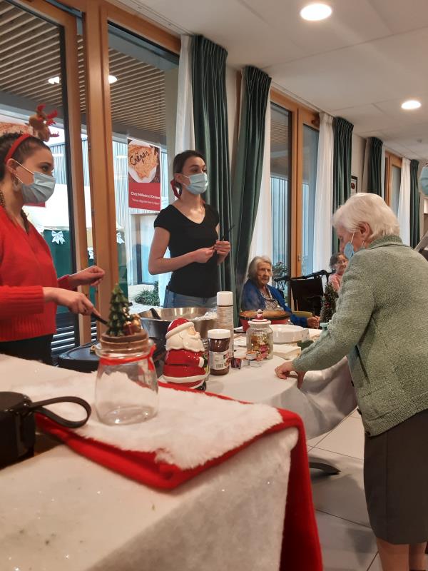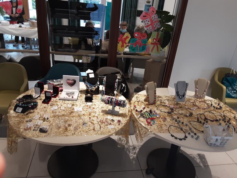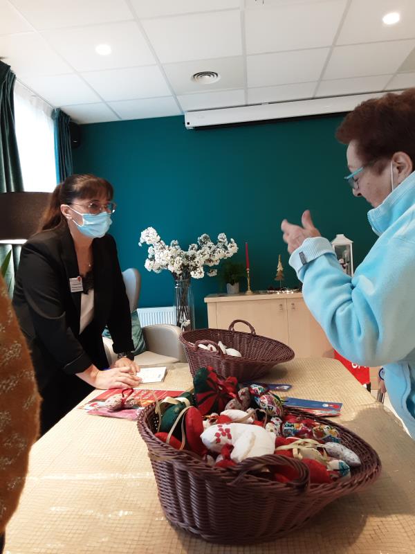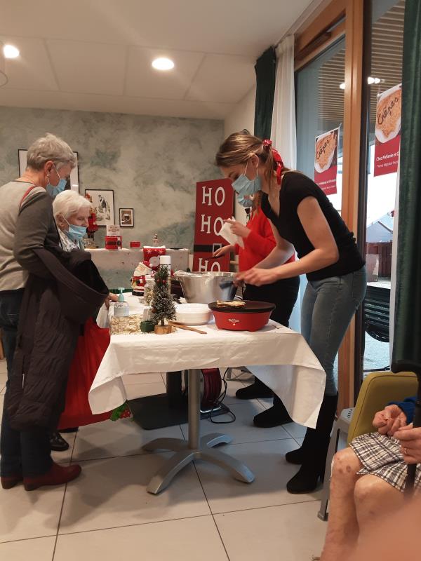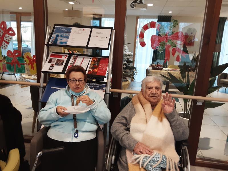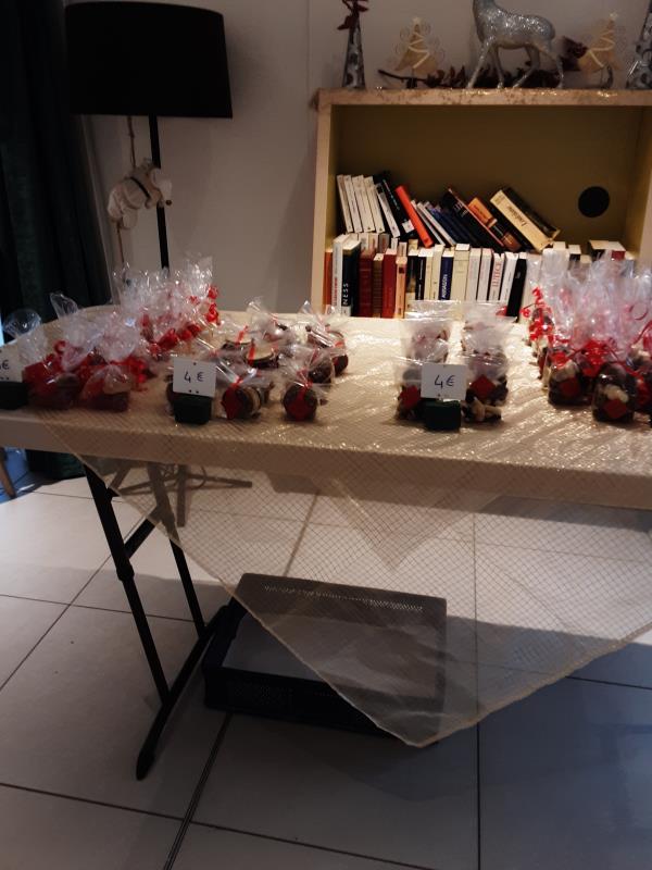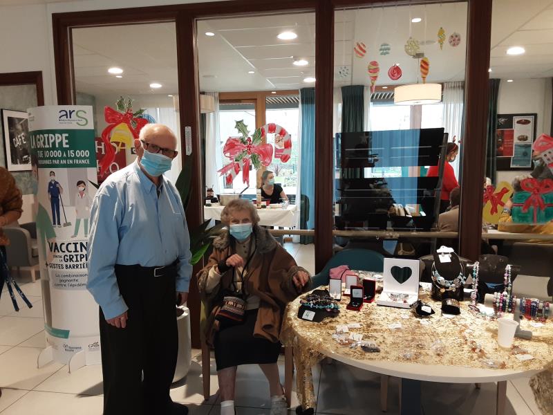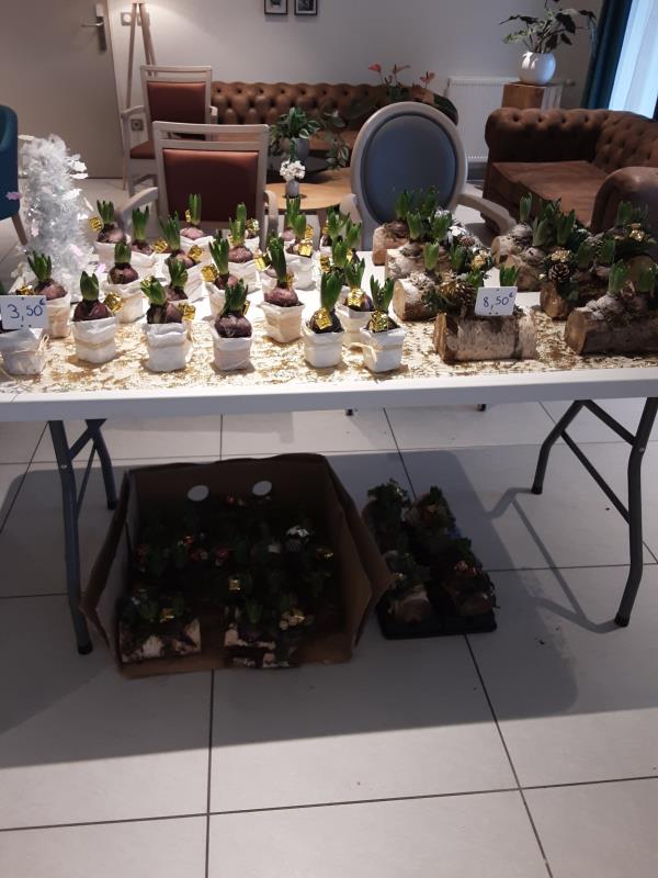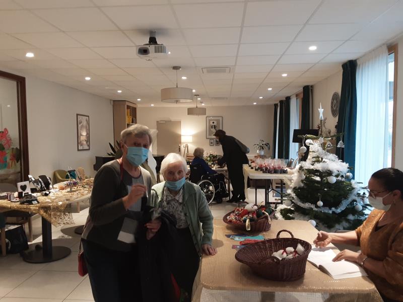Durant le 24 décembre, nous avions prévu un petit marché de Noël, on pouvait y trouver des cœurs et des nounours qui sentent la lavande, réalisés par les résidents. Un stand de jacinthe, un stand de chocolats et de pâtes de fruits.