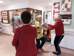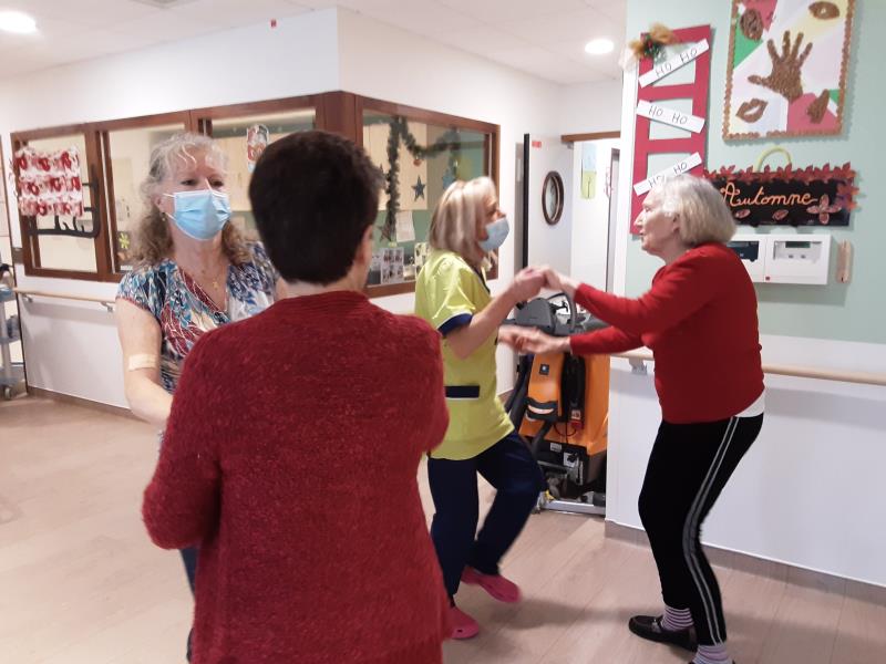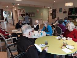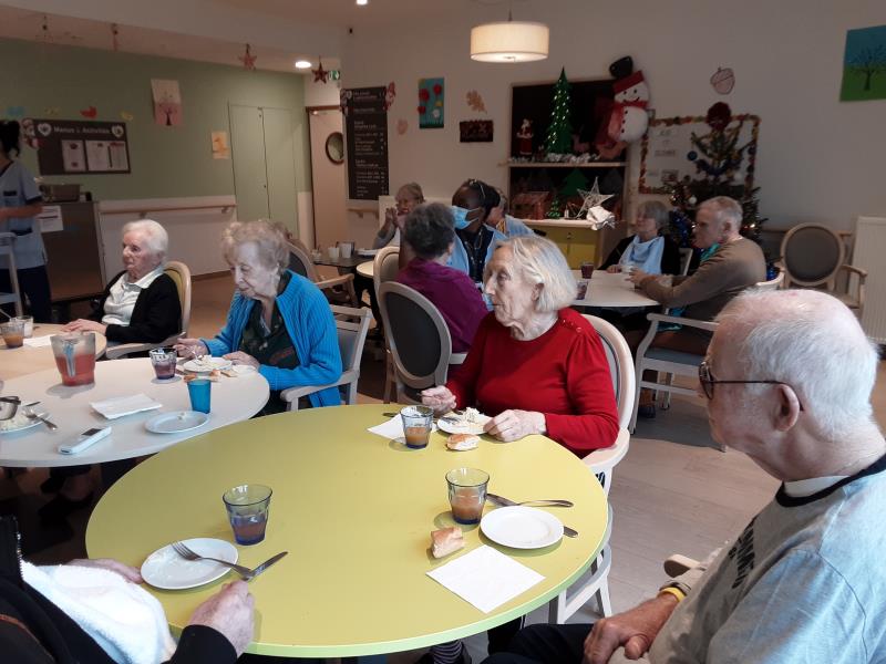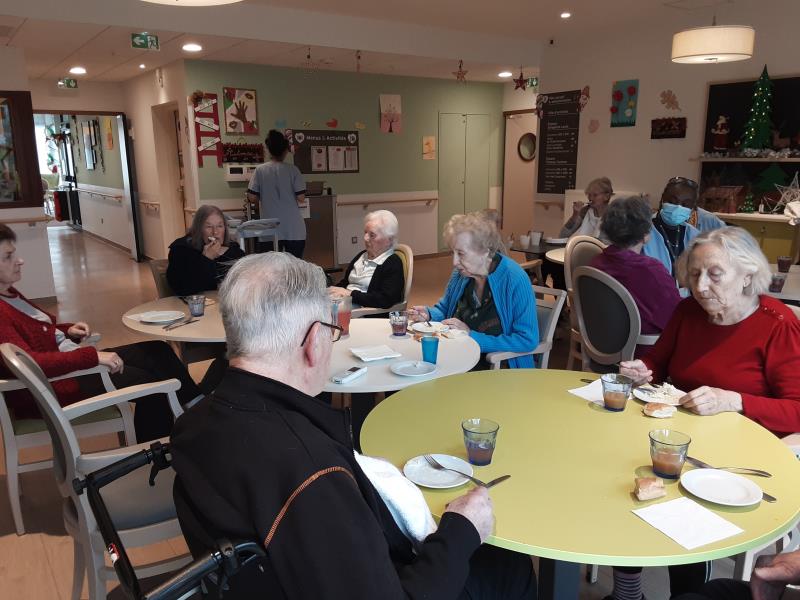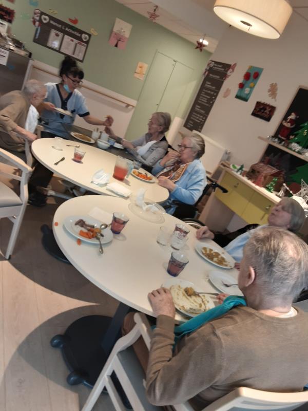 Les résidents déjeunent avec les soignantes et une animatrice dans chaque unité.