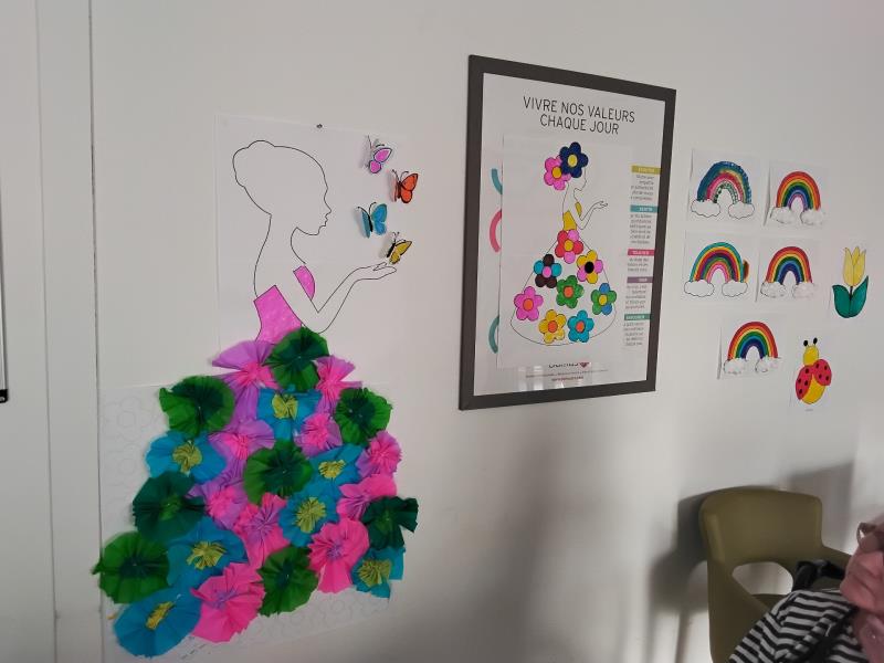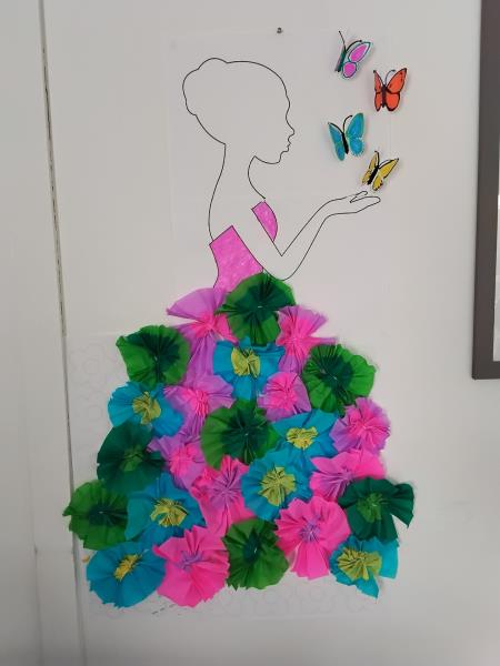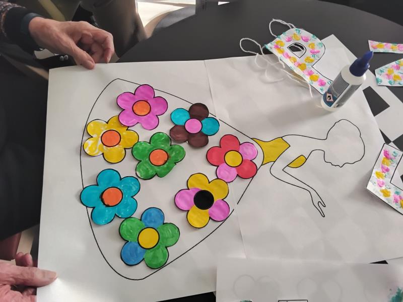 Une activité particulièrement appréciée a été la création d’une “dame du printemps”, dont la robe a été confectionnée avec des fleurs en papier crépon de différentes couleurs. Chacun a pu laisser libre cours à son imagination pour composer une œuvre unique et colorée.