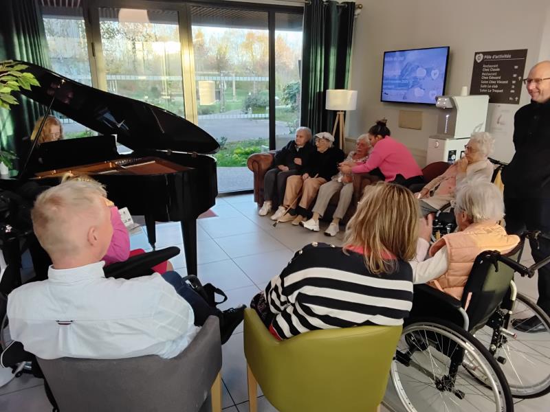 Nous avons eu le plaisir d’accueillir Émilie, la petite-fille d’une de nos résidentes, pour un moment musical plein d’émotion et de douceur.