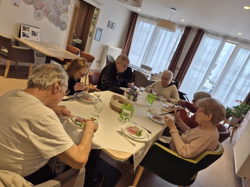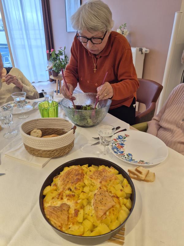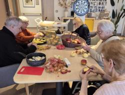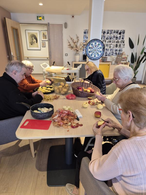 Au programme : épluchage des pommes de terre, découpe, préparation des ingrédients… chacun a participé selon ses envies et ses capacités. Ce temps d’atelier cuisine est bien plus qu’une simple activité : il mobilise les gestes du quotidien, stimule les souvenirs, favorise l’autonomie et encourage la coopération.