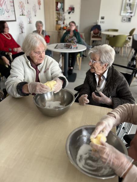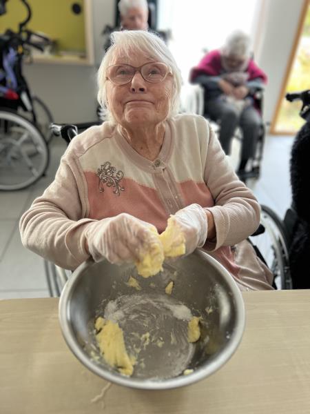 Pour terminer en douceur (et en gourmandise !) la Semaine du Goût, les résidents des Jardins de l’Aunette ont participé à une activité haute en saveurs et en rires, animée par Caroline, bénévole et ancienne pâtissière, aux côtés de l’équipe d’animation.