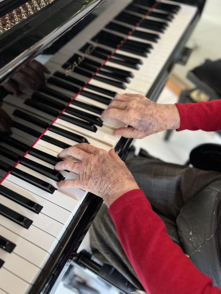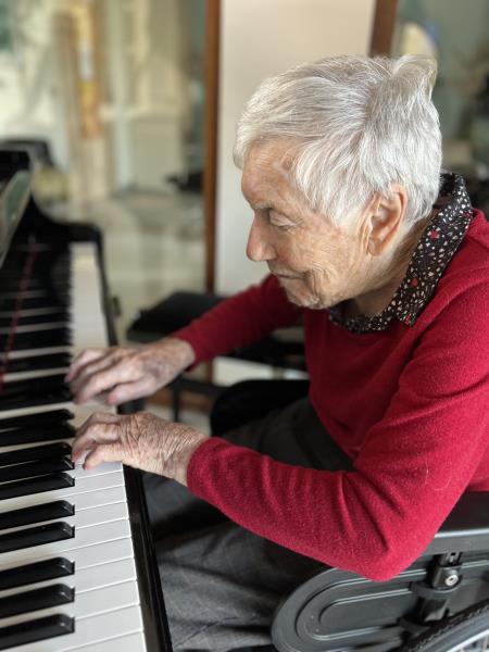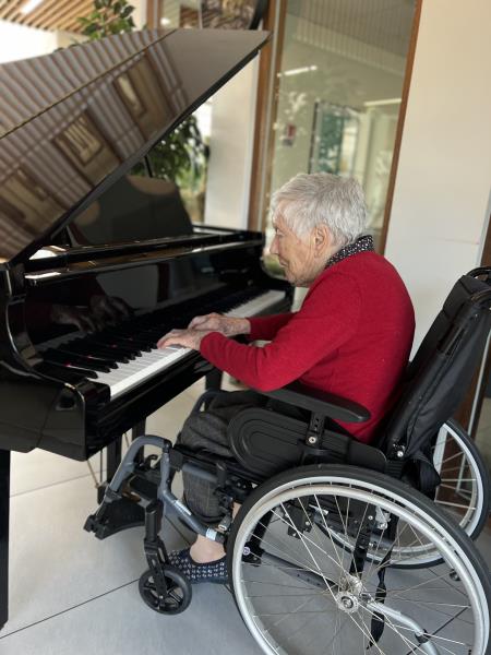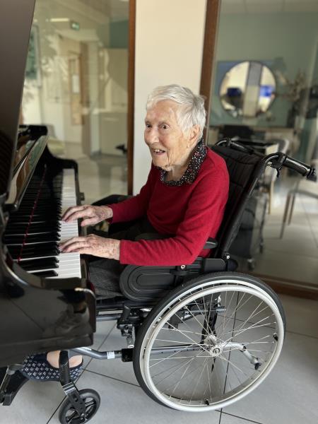 Chaque jour une résidente est accompagnée vers l'instrument qui autrefois était au delà de sa passion, son outil de travail. Notre ancienne professeure de piano a peut être cessée d'enseigner mais jamais de se laisser porter à travers ses souvenirs d'un geste tant répété et apprécié, jamais oublié.