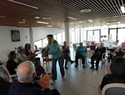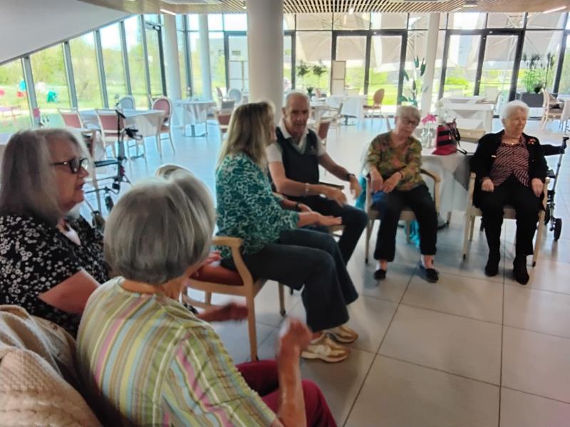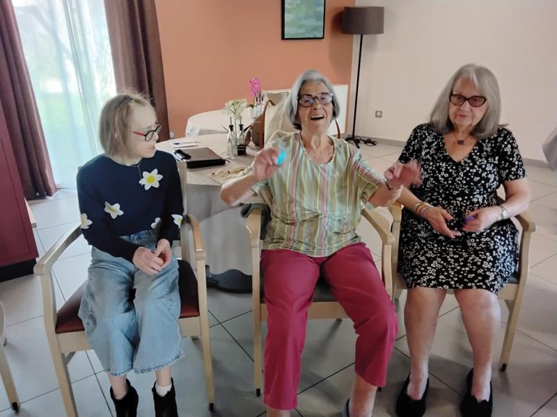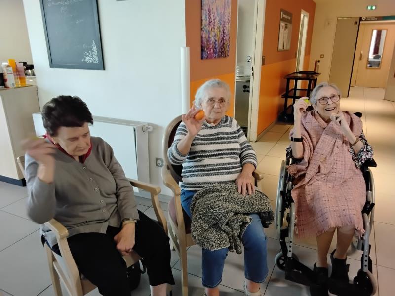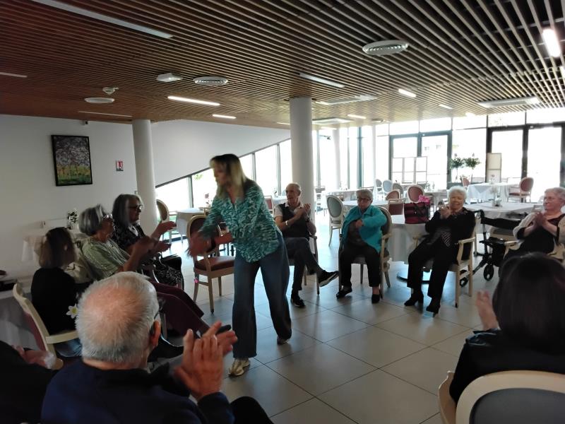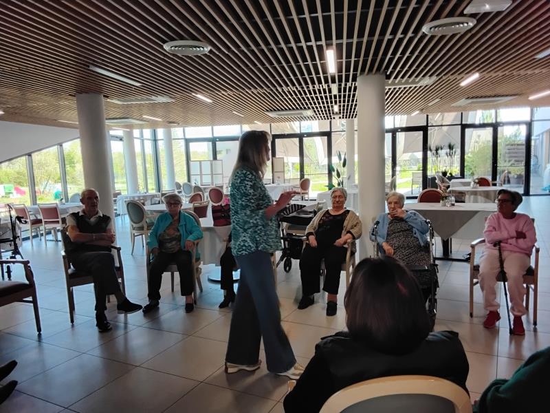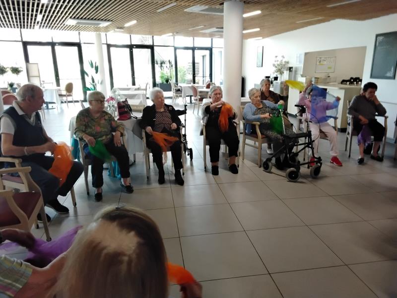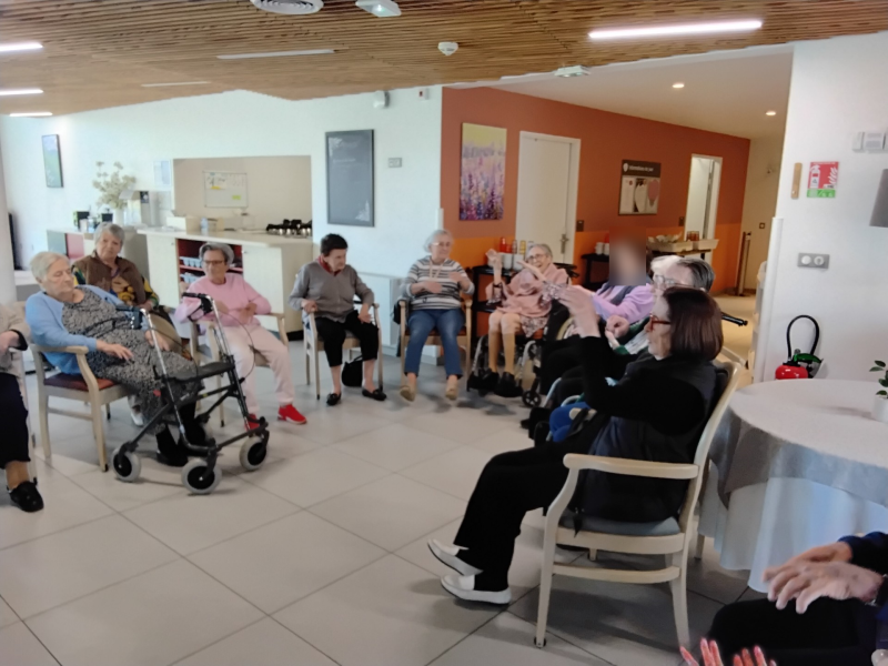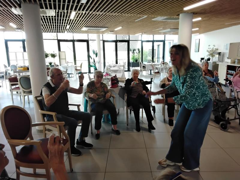 L’activité de danse assise, animée par Laurence, a rencontré un franc succès auprès des résidents. Dans une ambiance conviviale et dynamique, chacun a pu participer à des mouvements adaptés, mobilisant à la fois les jambes et les bras.